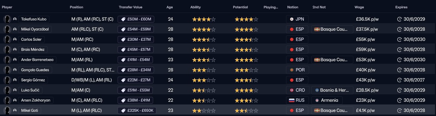 Real Sociedad is rightfully considered to be modern day football factory. As I mentioned in my previous blog, some big names have emerged from Sociedad’s Cantera academy. So its not surprisingy that at the start of 2025-26 save, there are already a few potential football stars within the First Team and youth/B team squads.