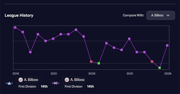 The longest-running rivalry in Spanish football is undeniably the one between Real Sociedad and Athletic Club (Bilbao), the so-called “Derbi Vasco” (Basque Derby). The matches between the two Basque giants are extremely tense affairs, full of excitement and drama. Since the inception of both clubs, the two have faced each other a total of 193 times (as of the end of 2024-25 season). Of these times, Athletic have won 80 games, and Real Sociedad – 62. So that definitely sets a goal for any long-term save with Real Sociedad. I’ll definitely be itching to set the record in Real Sociedad favour in FM26.