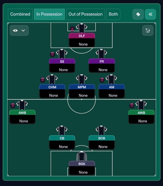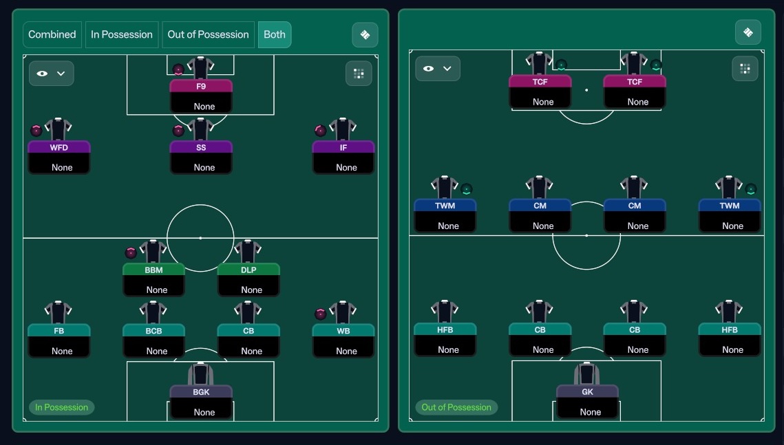 As previously mentioned, you are no longer limited to creating one tactical shape for your team to play when attacking and defending. In previous FMs player roles and team instructions would basically instruct the out-possession (or defending if you will) behaviour. Now in FM26, you will actually create two distinct formations to use when attacking and when defending. And I actually find that this makes tactic crafting more intuitive and inherently easier. It’s also makes it easier than ever before, to emulate the tactics of historic managers.
