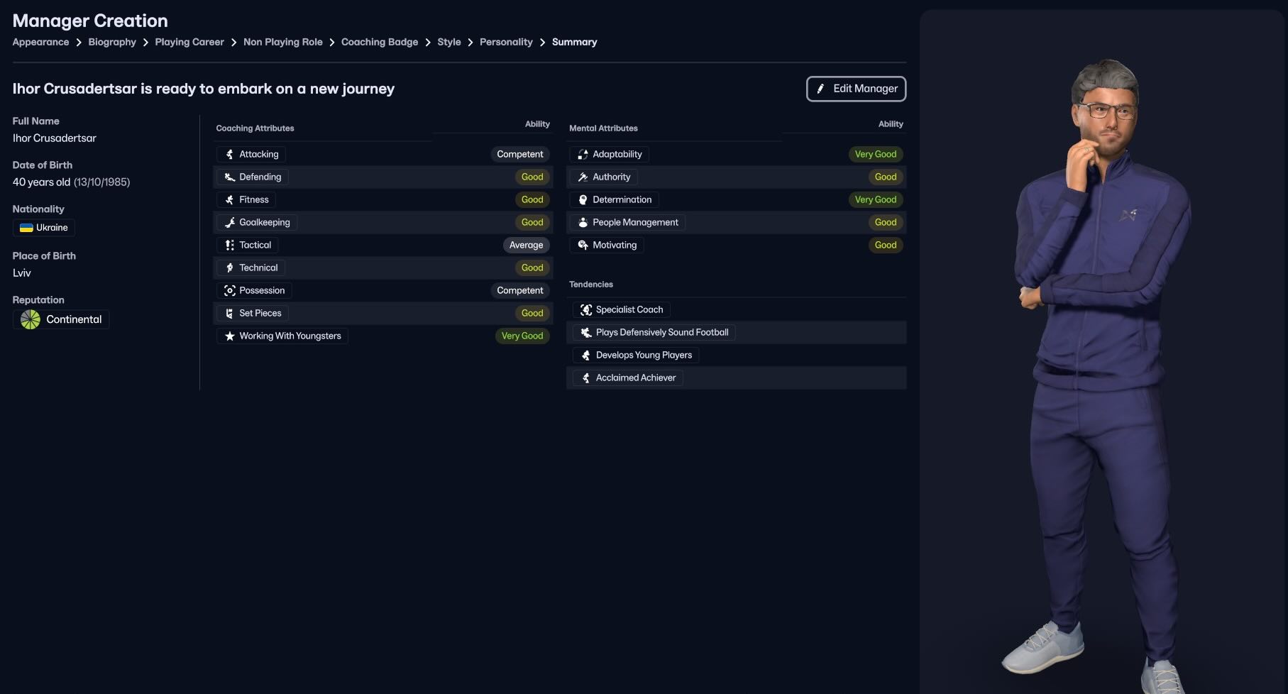 ADDENDUM: Okay, I have to be honest I had a 4th, SECRET real manager inspiration. This one was a purely superficial/aesthetic one. The football coach fashion icon that is Marcelo Bielsa, especially during his Leeds period.