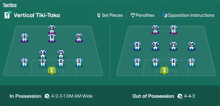 SIDE NOTE: Christmas Tree formation is an intriguing shape that I would like to eventually try in this save. I’ve had mixed results with it in my other saves with previous FM versions. But I have a feeling that the addition of the out-of-possession tactics might make it better than ever before.