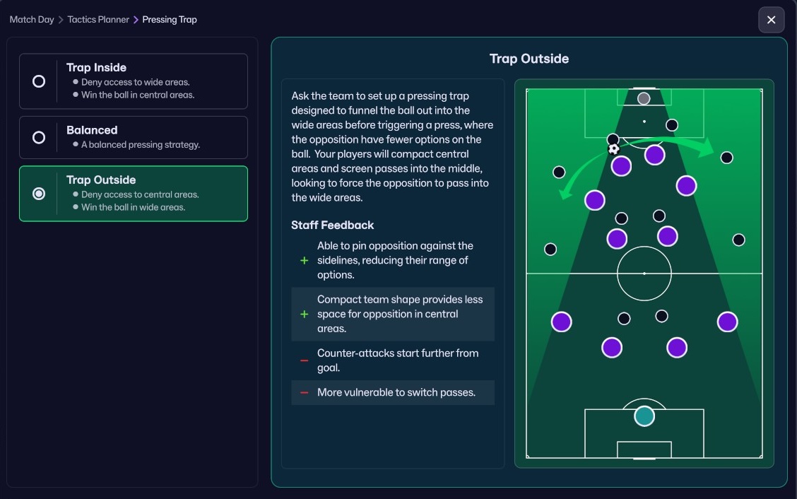 Sports Interactive has completely revamped tactic creator to keep pace with how the modern game is evolving. It makes no sense to use the same formation throughout the whole match anymore. Not when many contemporary managers alternate 3-4 formations per game, depending on the phase of the game and whether their team is in possession of the ball or not.