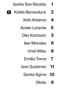 I named an XI as strong as I could – wanting to make few changes from the line-up that did so well just seven days ago. Manex Agirre moved to the left to replace his namesake, but not relation, Gorka, and Okolo returned from injury as the channel forward.