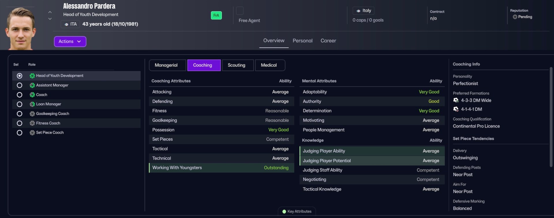 So, Francesco Serrapica was thanked for his service and allowed to leave. In his place comes Alessandro Pardera, a 43-year-old Italian with a perfectionist mentality and a possession-based style that mirrors my own philosophy.
