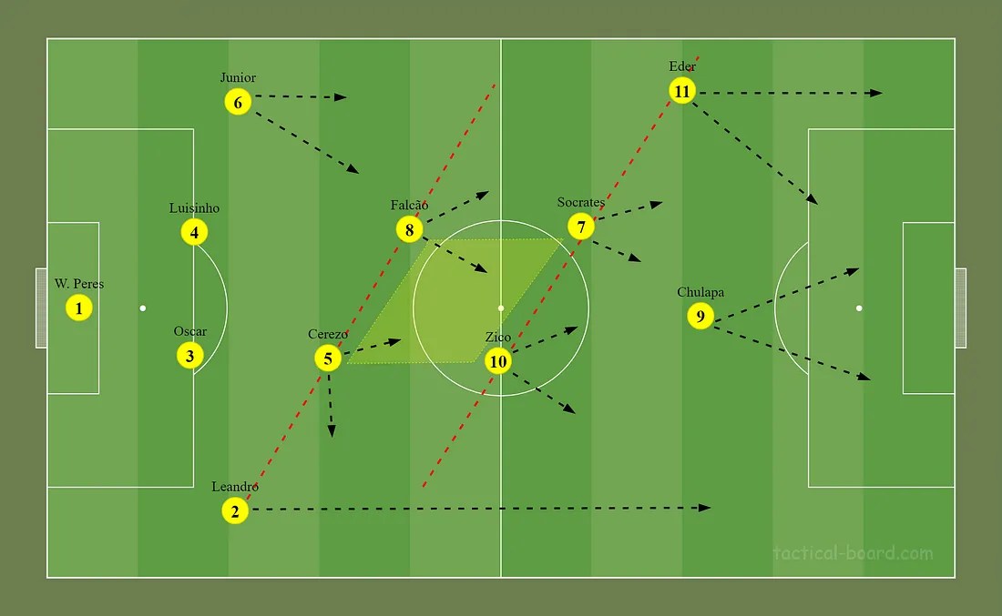 The best Braziliian wingbacks possessed the workrate, pace, stamina, and the technical skill to do overlapping attacking runs, perfectly blending the roles of a fullback, midfielder, winger, and even striker at times. Much like a deep-lying winger, Brazilian wingback is expected to be an accurate crosser of the ball, an essential link-up player between defence and attack. In addition to chance creation, an attacking wingback has to provide an effective threat on goal, to reflect the “winger” portion of his name. And sometimes, as Carlos Alberto proved, he has to act as an extra striker.