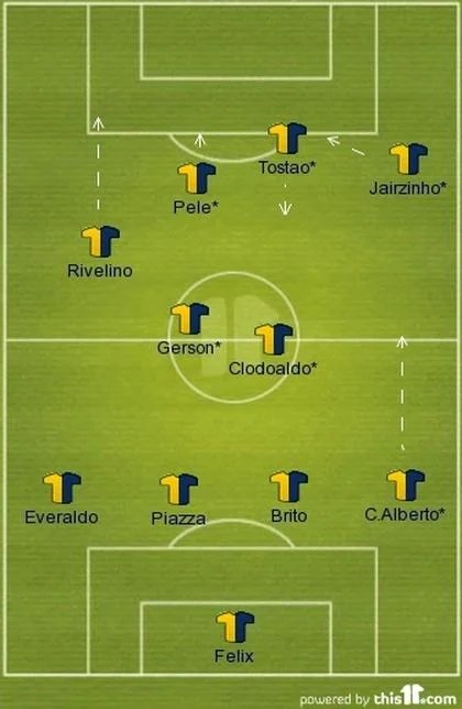It’s hard to believe from the footage above that the goal-scorer is in fact a player who starts in a deep defensive fullback position. Carlos Alberto Torres – The one and only. The star player of 1970 World Cup. He was one in the long line-up of stereotypical Brazilian wingbacks. Powerful, lethal, fast, unpredictable, exceptionally athletic and tireless. Other notable examples being Cafu and Dani Alves.