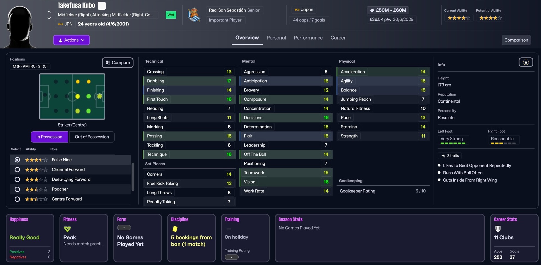 I’m actually sad that Kubo is not Basque and probably won’t be staying in my squad very long, because he is actually a very good choice for the False 9 role. Oyarzabal is still my first choice however, and probably the role he plays the best.