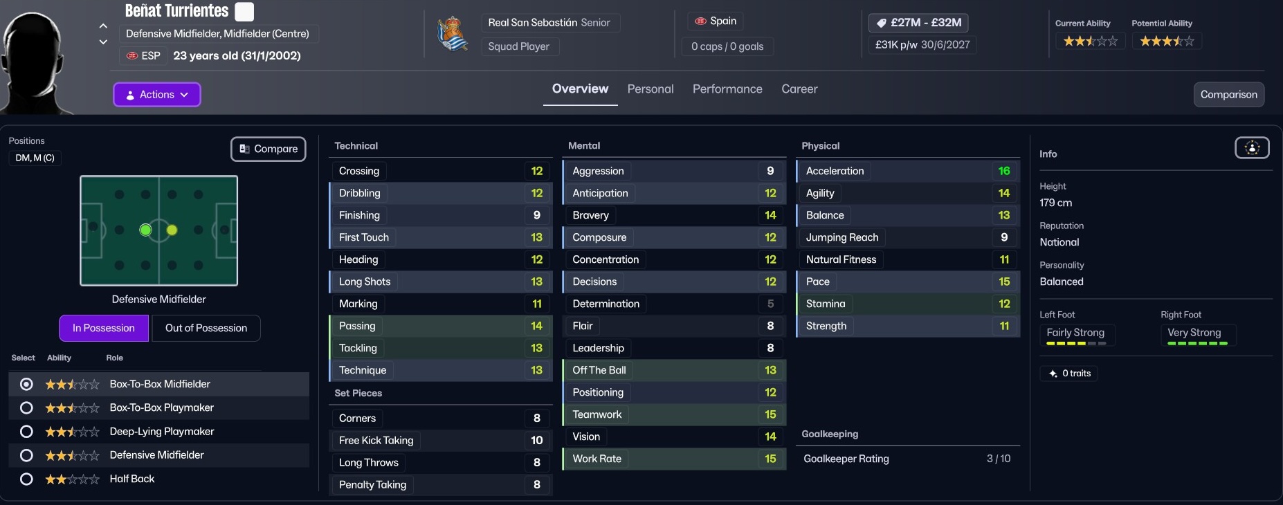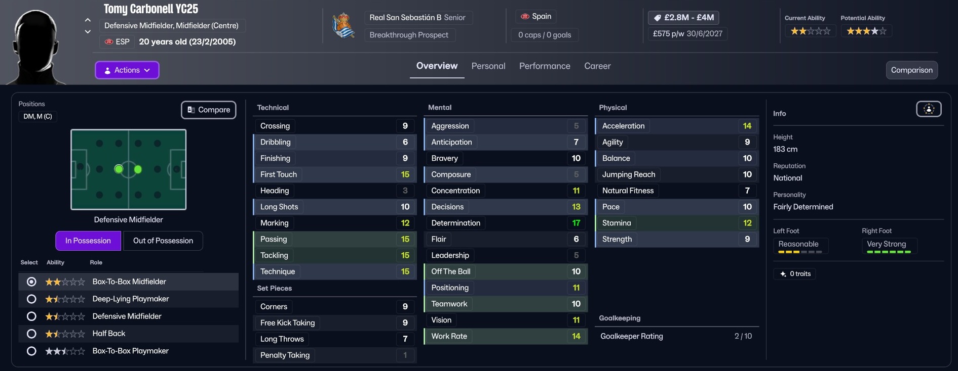 A good BBM needs good Marking, Tackling, First Touch, Passing, Decisions, Off The Ball, Positioning, Workrate, Acceleration, Pace and Stamina. As a good rule of thumb, you should look for a well-rounded “Total Footballer” type of player who can be effective in both halfs, defending, and attacking (hence focus on both Positioning and Off-The-Ball). And if you have a youngster who is already showing early signs of developing into a candidate for your squad’s BBM spot, then take over his training and put him on “BBM Playmaker” individual role training as soon as possible! And find some good mentors. Hopefully you will have a gem on your team in no time.