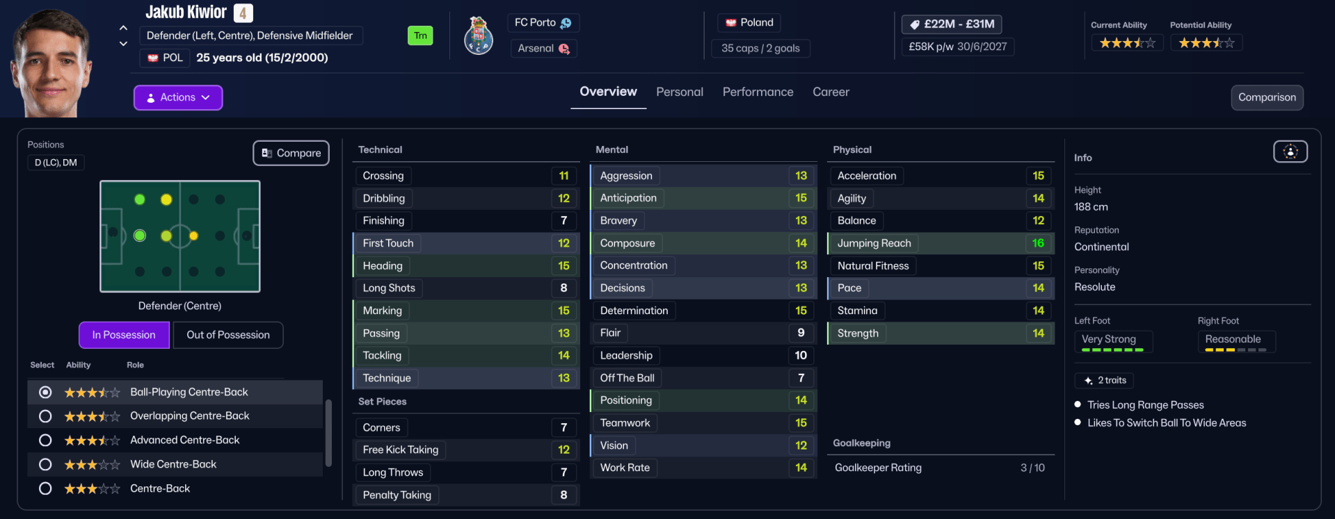 To successfully replicate Farioli’s system, players must possess high Composure, Passing, Off The Ball movement, and Work Rate. Here is a detailed look at the best candidates for the most specialised roles at FC Porto.