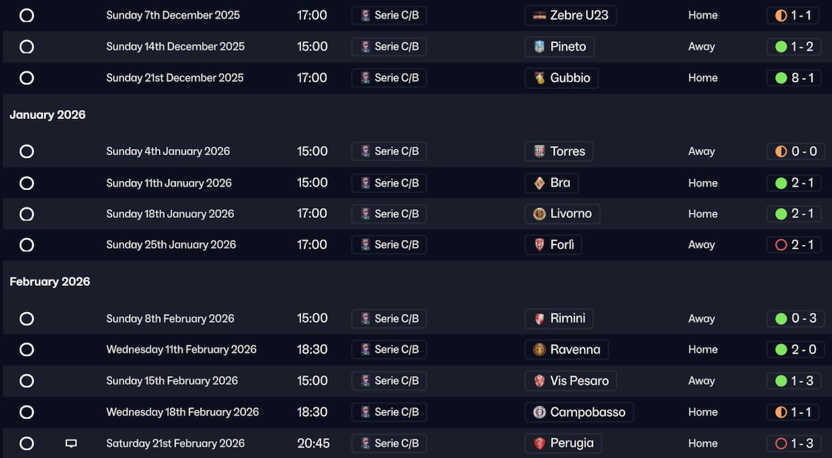 We beat Vis Pesaro 3-1, before a heavily rotated side scraped a 1-1 draw against Campobasso. But rushing Eklu back proved a mistake; he aggravated the injury and will now miss two months. Our midfield destroyer gone for most of the run-in.