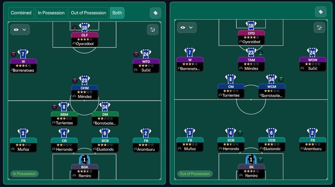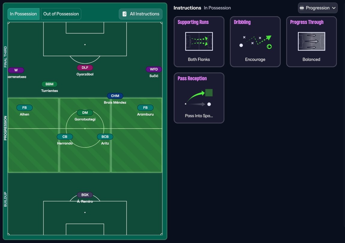 Pragmatic style of football is often associated with managers like Jose Mourinho and typically more concerened with keeping clean sheets and winning “clinically” than maintaining superior possession or engaging in “flashy”, entertaining attacks. My kind of football! As you can see in the link above, I already wrote about it in 2021 when I created my first Swiss Army Knife Tactic with FM21 (also tested with Real Sociedad then). I will be taking some inspiration from that older tactic and trying to make the new and improved Swiss Army Knife Tactic (aka Basque Football 3.0) work in Football Manager 26.