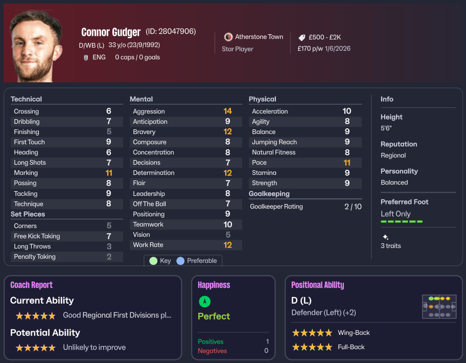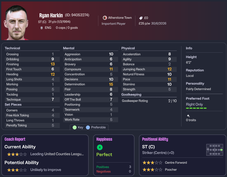 The first was Ryan Harkin, a prolific striker who’d left Atherstone after their play-off exit and joined Coventry United. Coventry were top of the league, flying, and Harkin was their main man up front—12 goals from 20 games, comfortably the division’s top scorer. On paper, there was absolutely no reason for him to drop down to a mid-table side. But Paul had to try.