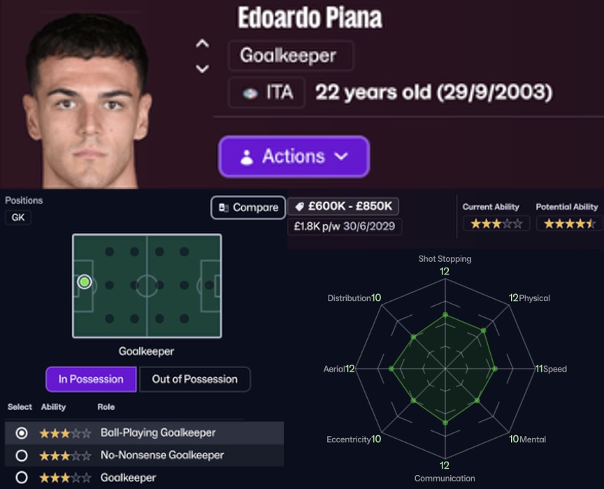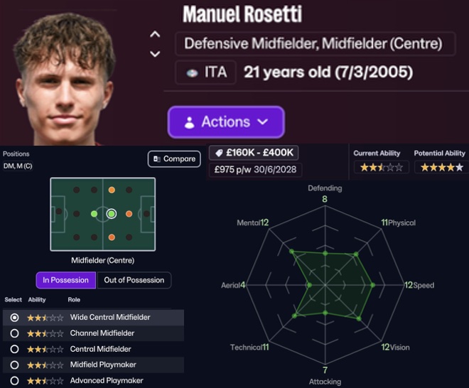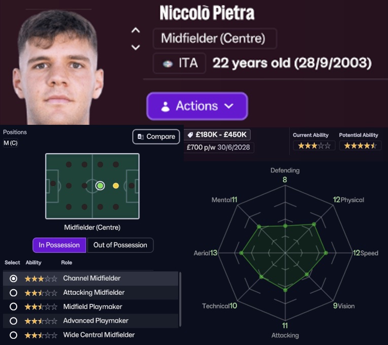 What he lacked was obvious too: his technical floor was lower than the rest. Passes were safe, occasionally loose, rarely ambitious. But that was exactly why the new staff were intrigued by him. Improvements to his ball control and a bit of offensive flair would turn him from a reliable understudy into a genuine Serie B option.