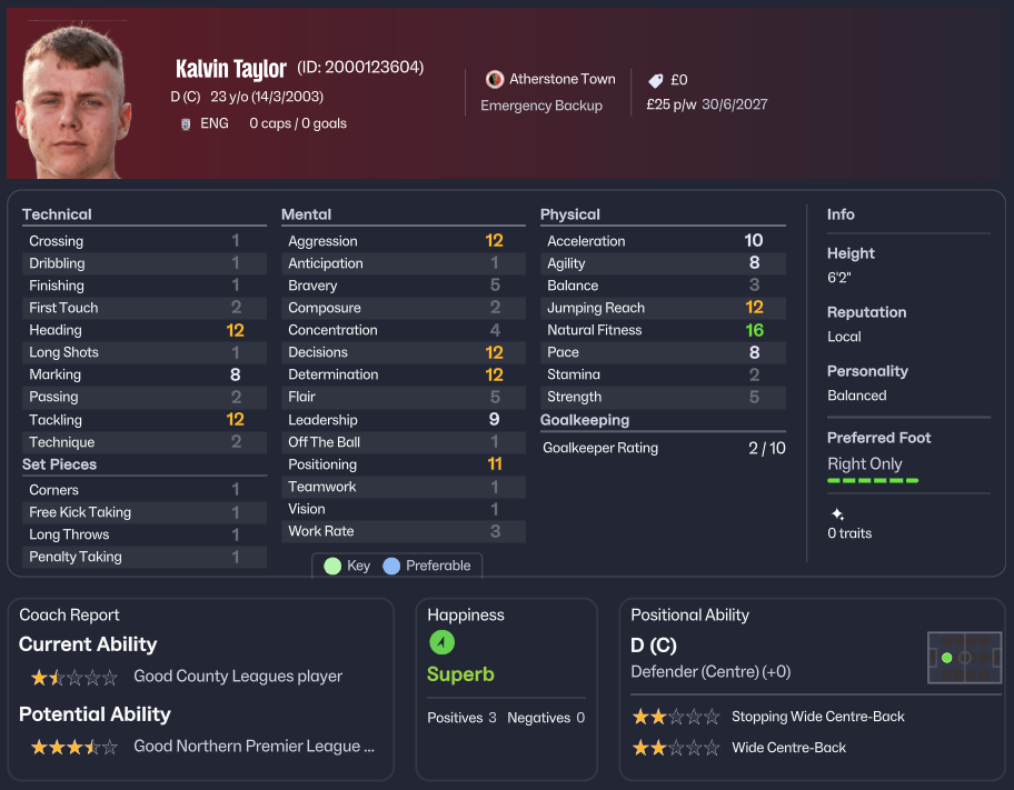 Joshua Williams, the young defender who’d played his part in the promotion campaign, departed for Letchworth Garden City on a free transfer. A good lad with plenty of potential, but step four demanded more physical presence at the back than he could currently offer. Ryan Harkin—the same Ryan Harkin whose headed assist had set up Mitchell Woakes for the playoff semi-final winner against Lutterworth—followed him out the door, joining Abbey Hey. The move suited everyone. New signing Henry Sims went out on loan to Thornbury Town to get regular minutes, with a view to returning battle-hardened when the opportunity arose.