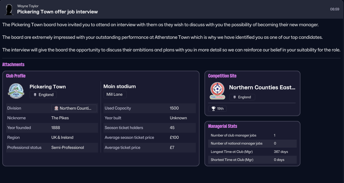 The second approach came from Pickering Town, a men’s side in the Northern Counties East League. Another club impressed by what was happening at Sheepy Road, another opportunity to test himself in a different environment.