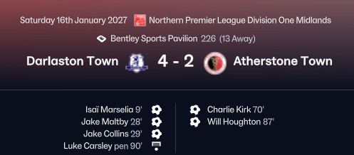 The new year began in spectacular fashion. Mickleover visited Sheepy Road on 2 January 2027, and Charlie Kirk put on a masterclass. Goals on 38 and 39 minutes—a quickfire double that left the visitors shellshocked—had the home crowd on their feet. Andy Dales pulled one back on 54 minutes, but Charlie Filer added a third on 74 minutes to seal a 3-1 victory. Two hundred and forty-one supporters were in attendance, and they witnessed Kirk at his devastating best.