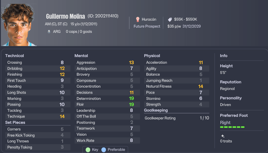 Guillermo Molina, 15, arrives from Santamarina on a free with sell-on clauses. An attacking player. Aggressive. Determined. Can dribble, can finish — but also has flair and technique.