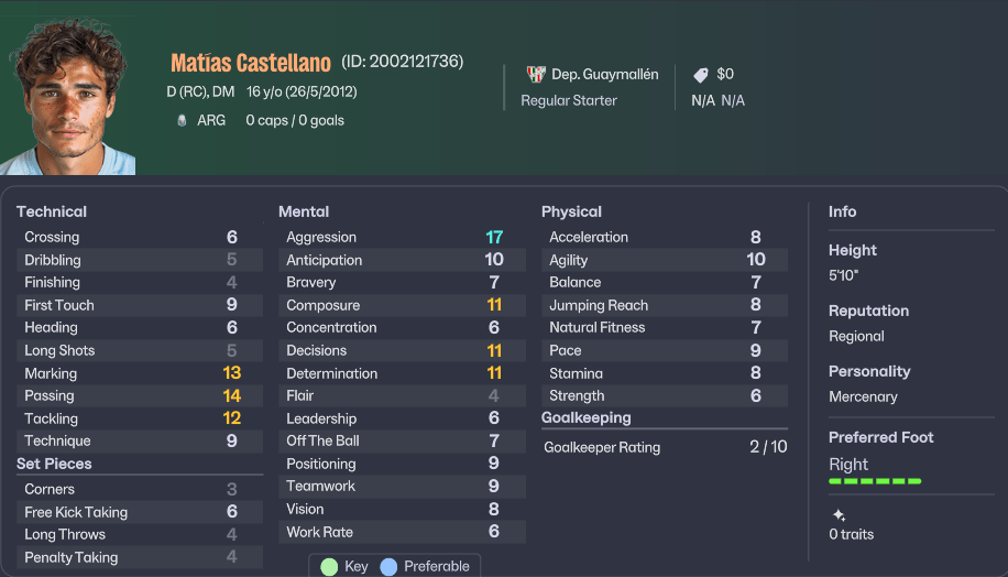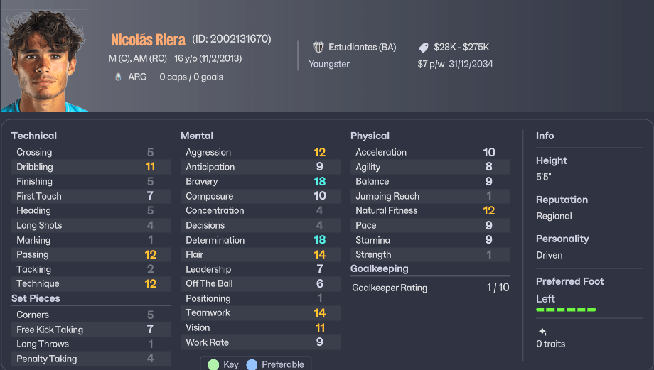 “His stamina needs work, and his passing needs consistency. He sees the right pass, makes good decisions, but the final ball isn’t always there yet. The technique is good — now it’s about repetition.”