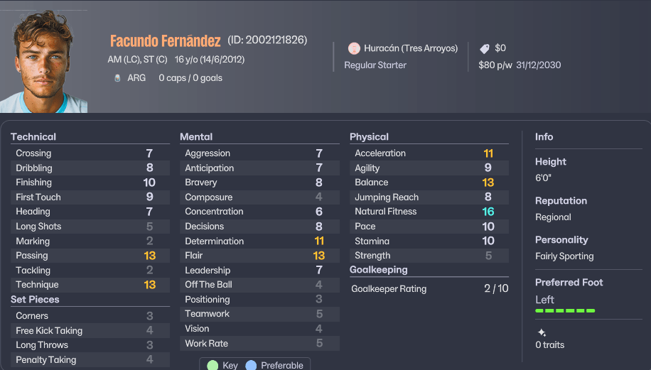 Facundo Fernández, 16, from Huracán (Tres Arroyos), is a different profile entirely.