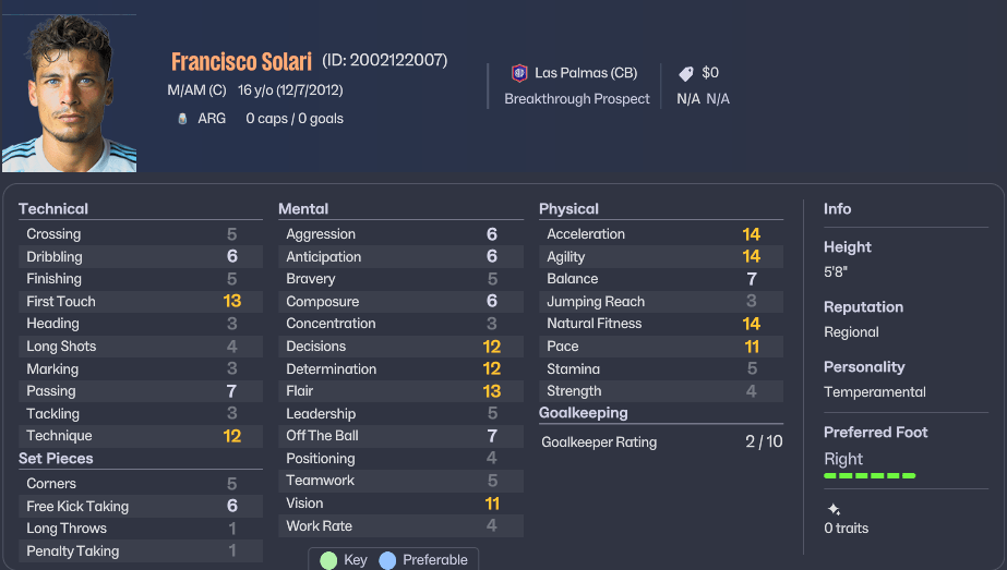 Francisco Solari, a midfielder from Las Palmas (CB), impressed immediately — but not for the usual reasons.