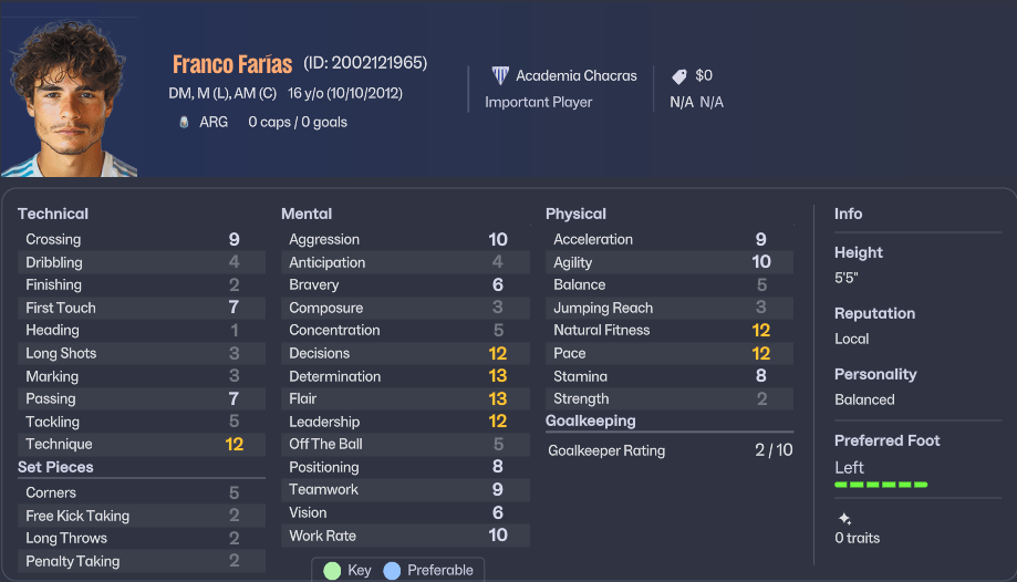 Franco Farías, 16, from Academia Chacras, arrives as a pure left-footer.