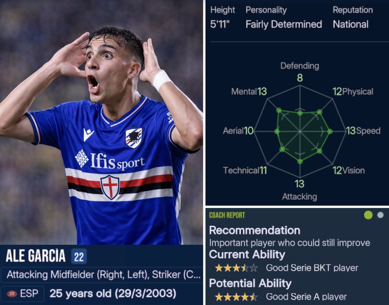 While much of our recruitment focused on defensive solidity, the system still requires outlets capable of punishing teams when possession turns over. Ale García was signed to provide exactly that. Quick, direct, and comfortable attacking space, he fits perfectly into the transitional nature of our approach. When opponents push bodies forward, García gives us a player who can carry the ball quickly into dangerous areas and create chances before defences can reset. In a league where we will rarely dominate possession, those moments of transition could be the difference between survival and struggle.