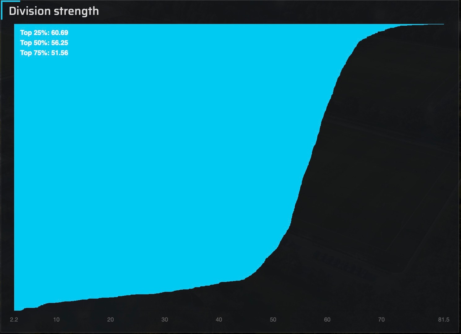 One of many useful tool to support the game, one of its features shows the average OVR of the best 16 players in each division.
