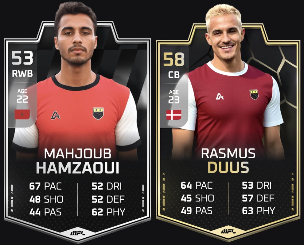 Mahjoub Hamzaoui is a 22-year-old right wing-back with enough pace and physicality to provide useful cover, whilst Rasmus Duus is a 23-year-old centre-back who could see decent playing time as backup.