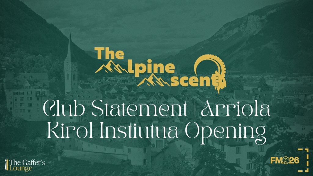 FC Chur is proud to formally announce the creation of the Arriola Kirol Institutua (Arriola Sports Institute), a non-profit development company established in equal partnership with Gernika Club and Aviron Bayonnais FC. Officially commencing operations on January 1st 2040, the institute represents a long-term commitment to the identification, education and development of young footballers connected by Basque football culture and values, regardless of their place of birth.